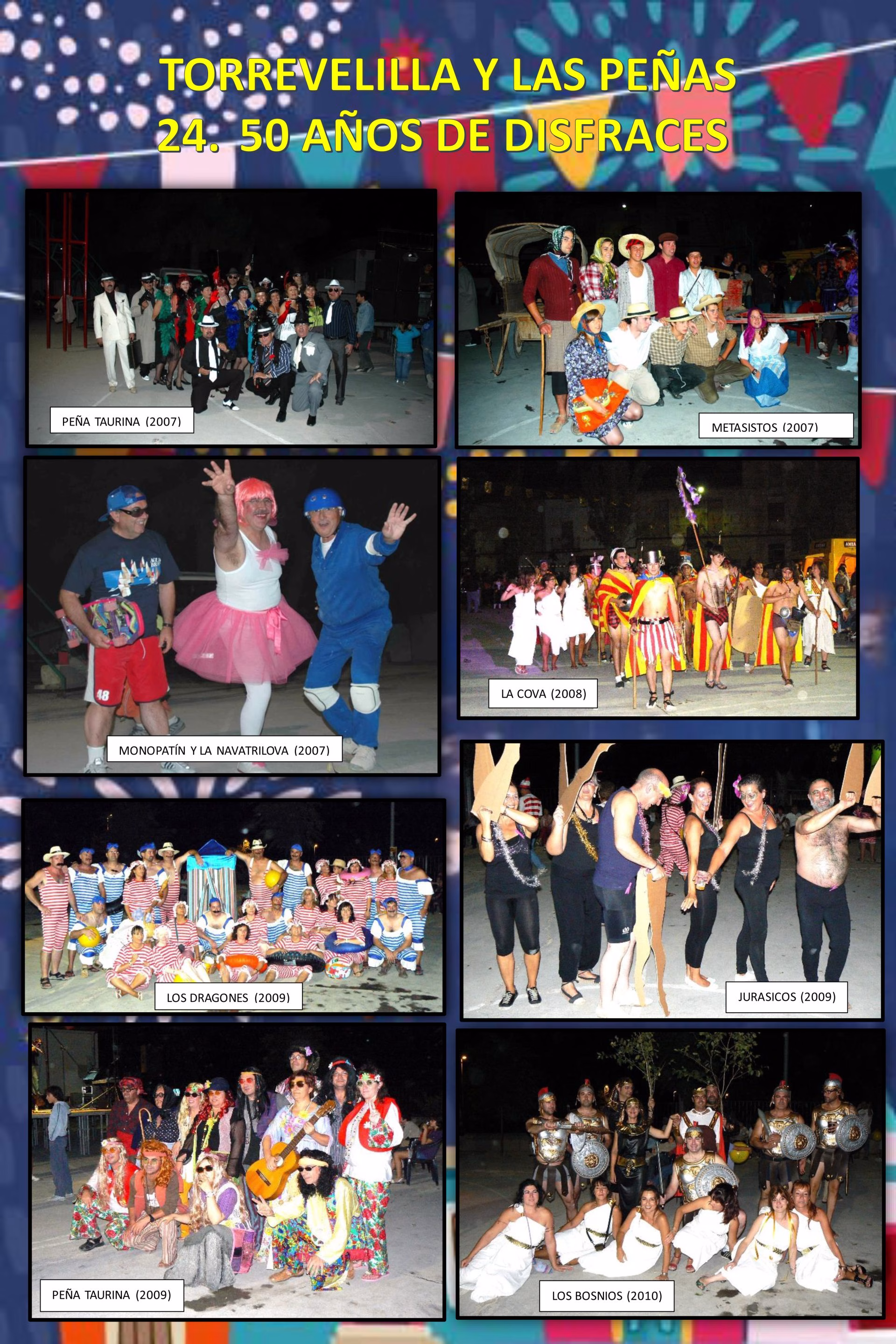 Esta exposición es un homenaje a todos los peñistas que, año tras año, han aportado su alegría, esfuerzo y creatividad para hacer de Torrevelilla un pueblo lleno de vida. Una invitación a recordar, reconocer y celebrar este tejido social único.
